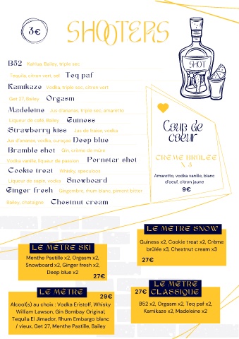 Alcool(s) au choix : Vodka Eristoff, Whisky B52 x2, Orgasm x2, Teq paf x2,